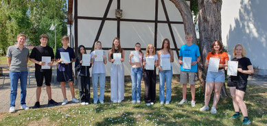 Hannah Bauhof, Anna Sidorov, Vanessa Schick (9a), Liana Stegmeier, Milena Bass (9b). Sie erhalten ein offizielles Zertifikat der Universität Cambridge, welches ihre guten sprachlichen Fähigkeiten